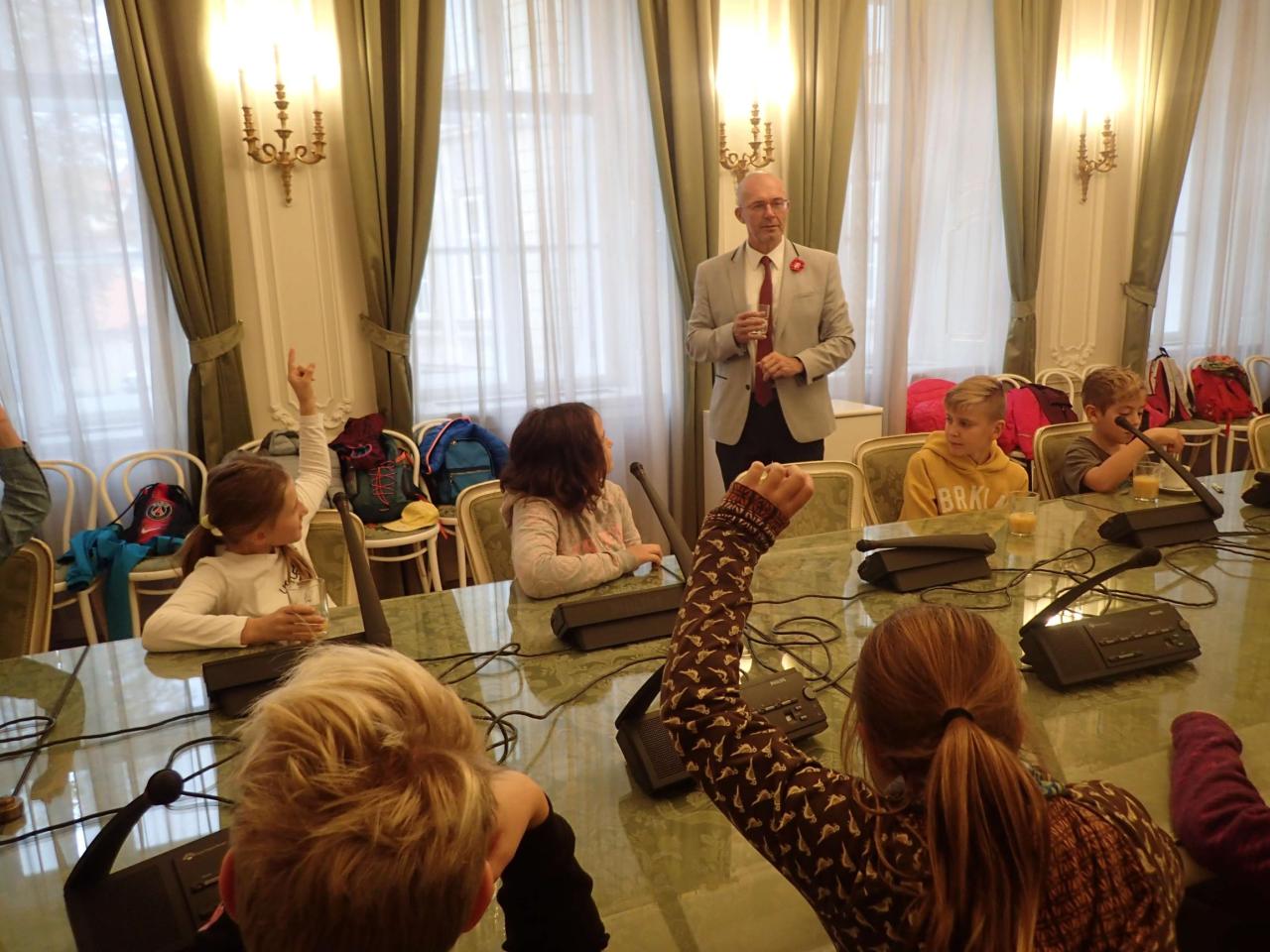Žáky čtvrtých a pátých tříd ZŠ Nelahozeves pozval na prohlídku reprezentačních prostor sídla Senát Parlamentu ČR předseda klubu Starostové a nezávislí Petr Holeček. Žáci se seznámili nejen s historickými reáliemi místa, ale měli možnost se na mnoho věcí, které je zajímaly, zeptat. Při besedě si Petr Holeček s úsměvem zavzpomínal i na svá kantorská léta. Děkujeme za krásnou prohlídku.