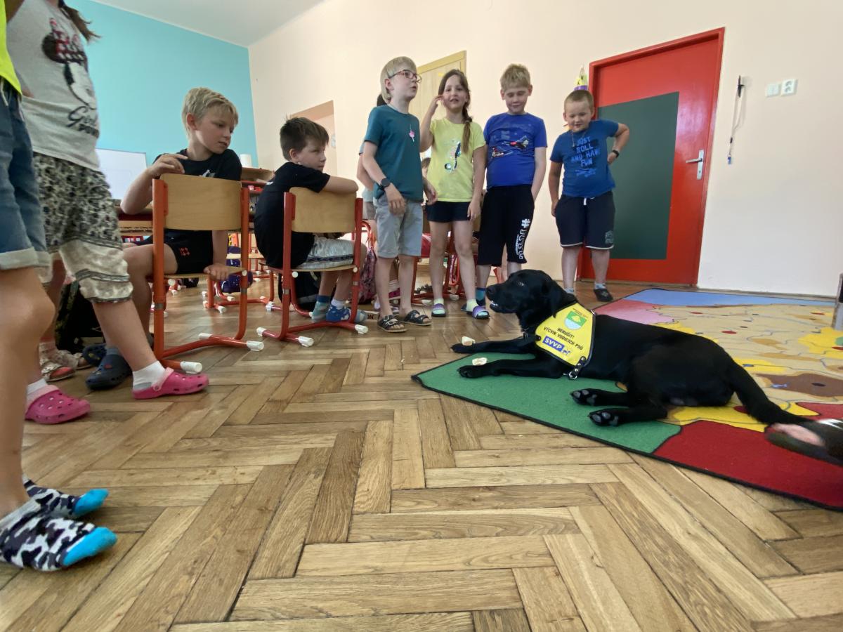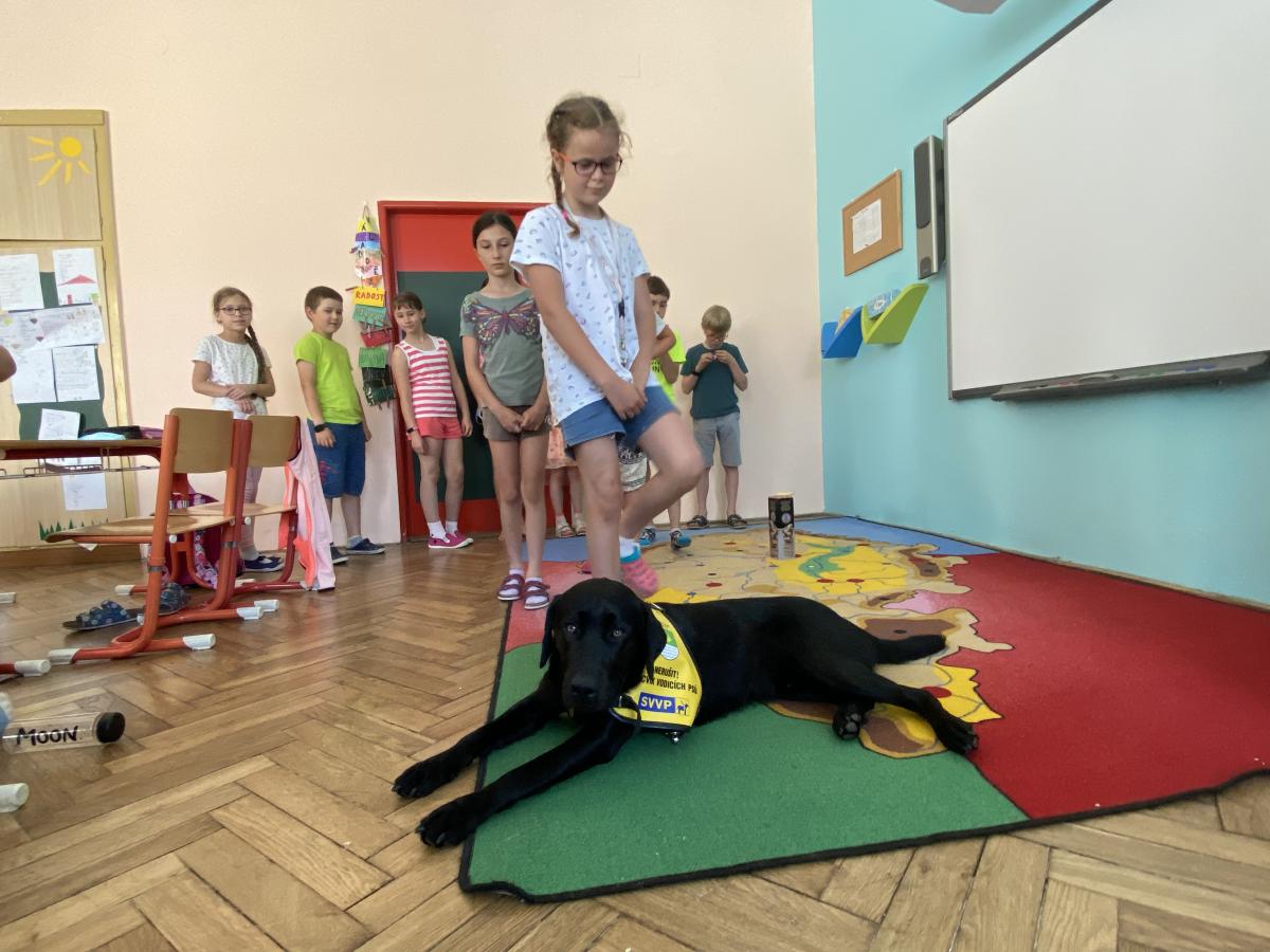 21.6. jsme zahájili ve škole týden s vodícím psem. Povídali jsme si, jak se chovat k vodícím a jiným asistenčním psům, jak pomoci nevidomé osobě. Zabrousili jsme i do anatomie psa. Zdůraznili jsme si, co je podstatné pro výcvik vodicích psů, co by vše měl vodící pes zvládat, jak se chovat v přítomnosti psa. Popovídali jsme si o výcvikovém středisku a samozřejmě nechyběla ani názorná ukázka. Děti byly nadšené, že se mohly vžít do nevidomých osob a nechat se vést vodícím psem. Nakonec se s Eccouškem všichni pomazlily. Děkujeme za návštěvu.