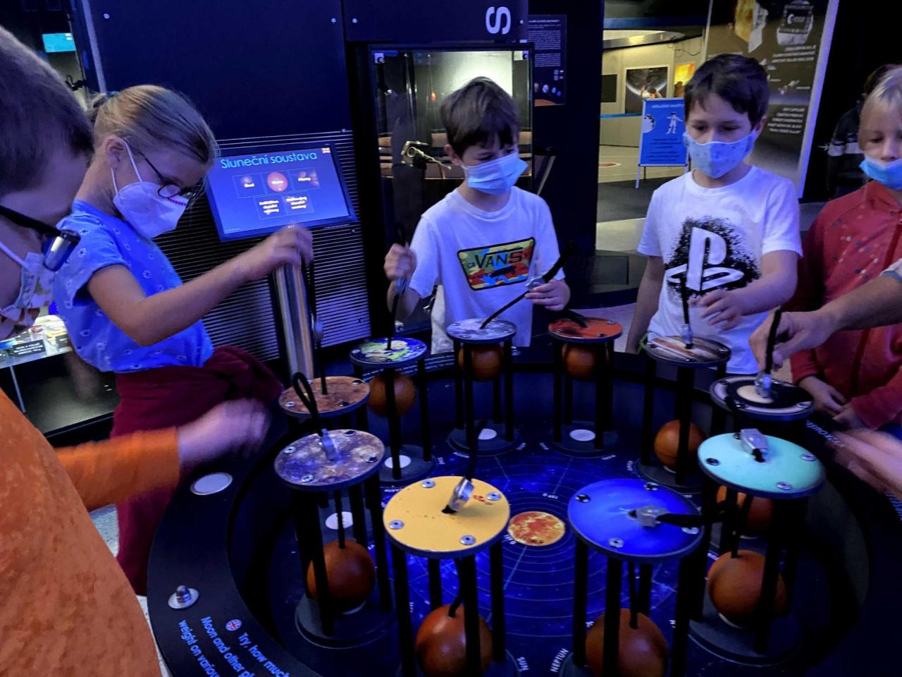 V úterý 5. 10. navštívili žáci 3. a 4. ročníku Planetárium v Praze. Na pořadu Planety v hrsti se seznámili s tělesy a planetami Sluneční soustavy, poté si vytvořili papírové modely planet a umístili je ve správném pořadí do odpovídajících vzdáleností od Slunce.