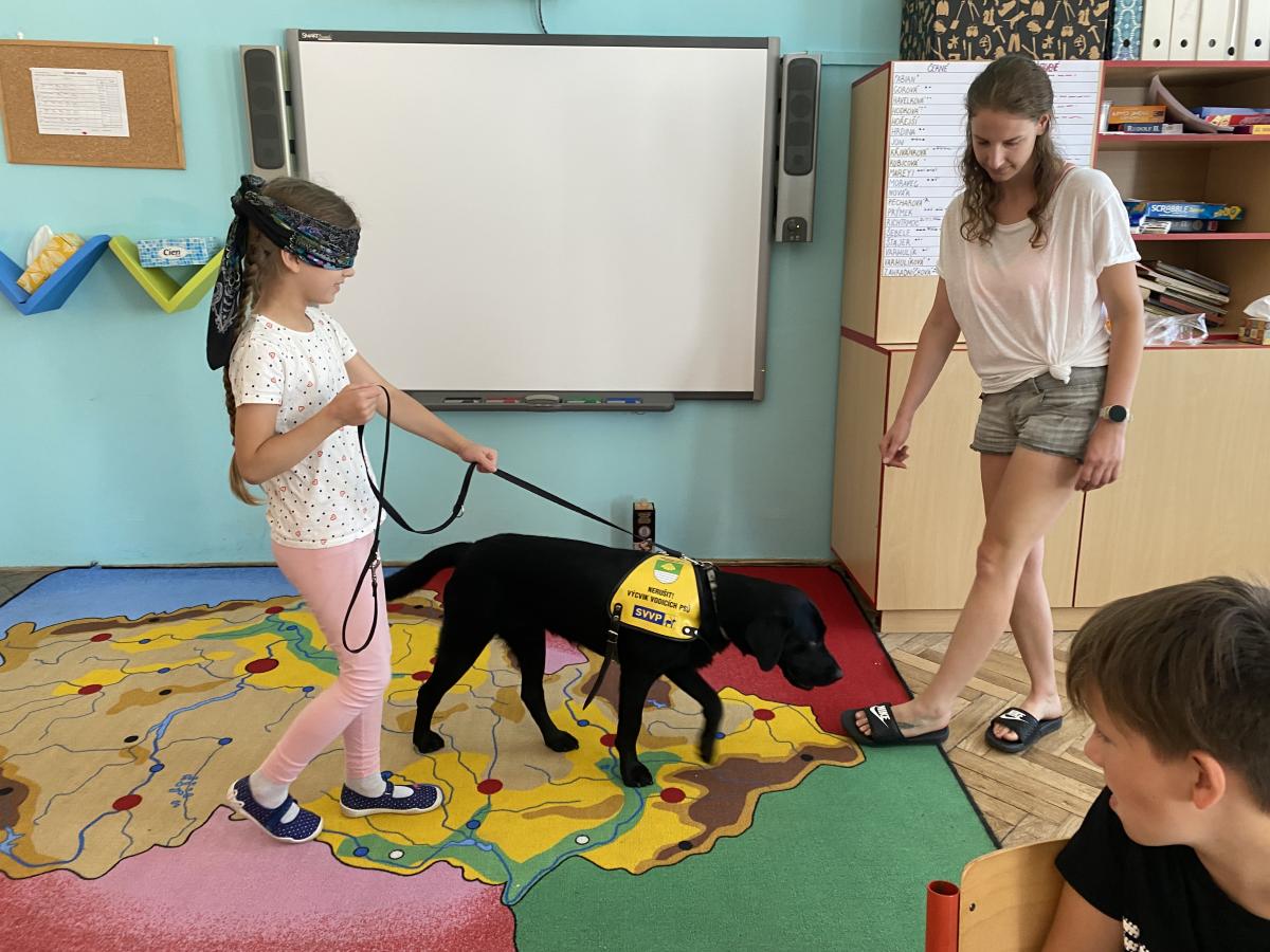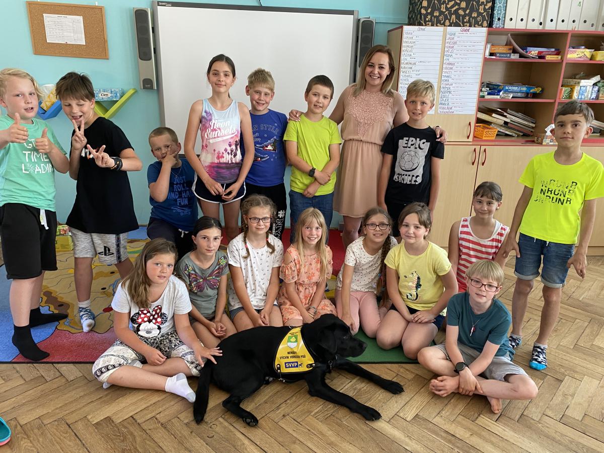 21.6. jsme zahájili ve škole týden s vodícím psem. Povídali jsme si, jak se chovat k vodícím a jiným asistenčním psům, jak pomoci nevidomé osobě. Zabrousili jsme i do anatomie psa. Zdůraznili jsme si, co je podstatné pro výcvik vodicích psů, co by vše měl vodící pes zvládat, jak se chovat v přítomnosti psa. Popovídali jsme si o výcvikovém středisku a samozřejmě nechyběla ani názorná ukázka. Děti byly nadšené, že se mohly vžít do nevidomých osob a nechat se vést vodícím psem. Nakonec se s Eccouškem všichni pomazlily. Děkujeme za návštěvu.