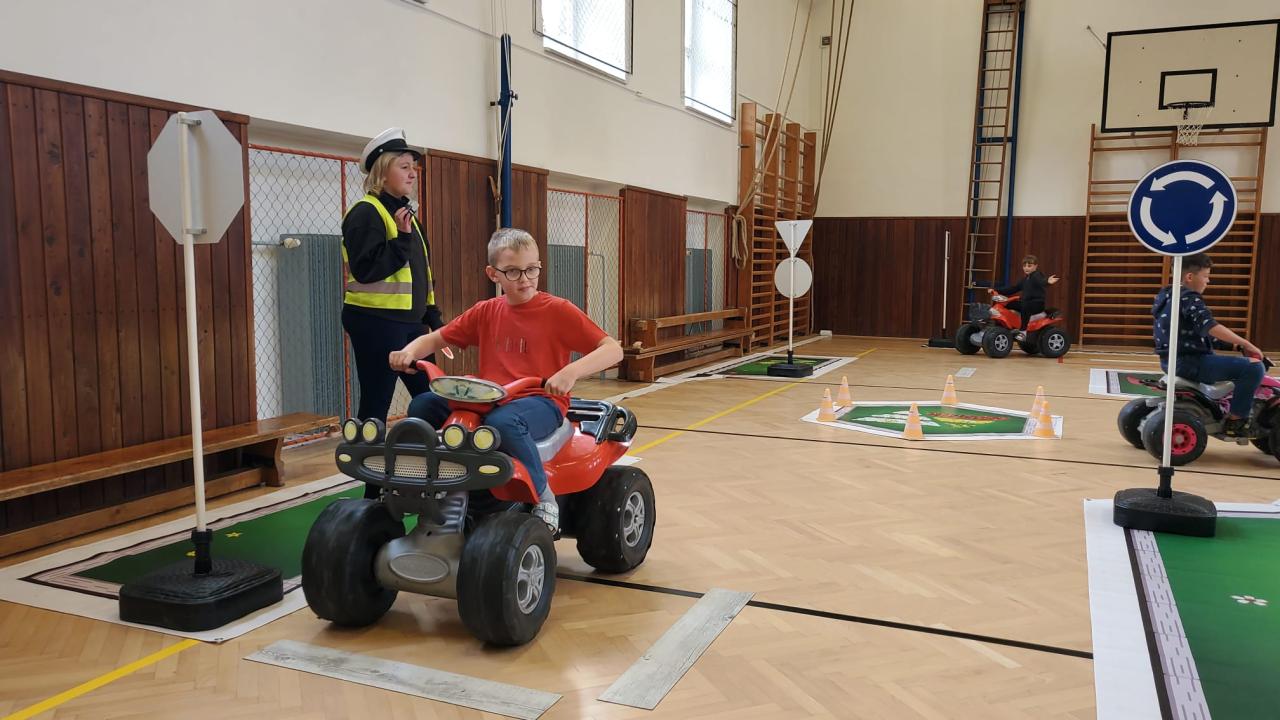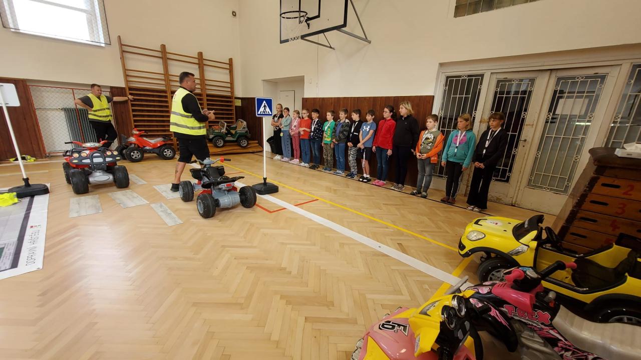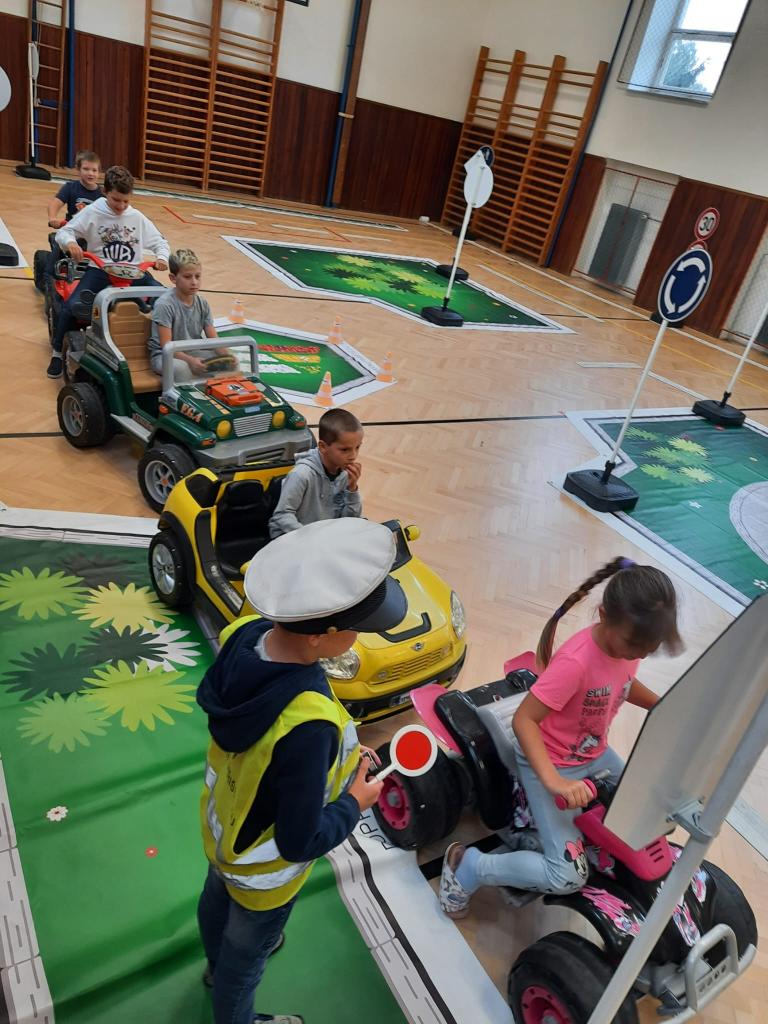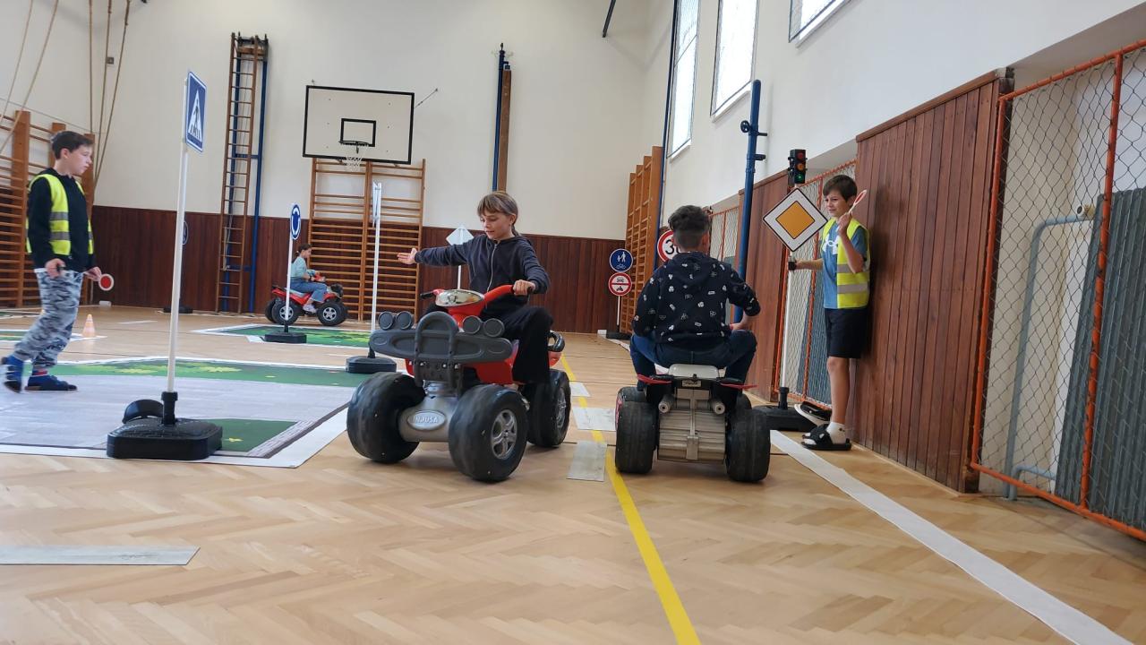 Jako každý rok nás navštívili pánové z dopravního hřiště. V tělocvičně připravili „silnice“ s dopravními značkami, kde si děti mohly vyzkoušet jízdu automobilem. Žáci si procvičili znalosti, které znají a naučili se, co ještě neznali. Děkujeme za návštěvu, děti byly nadšené.