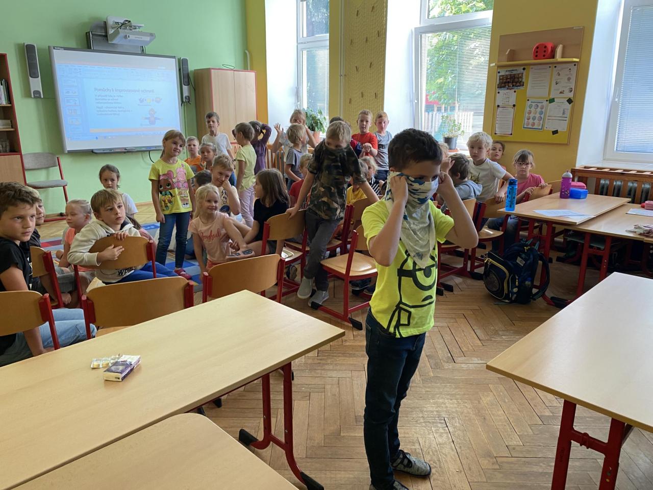 V tomto týdnu do naší školy dorazili zástupci mělnických hasičů, aby provedli školení žáků a učitelů k plánovanému cvičení. Na konci října si totiž na vlastní kůži vyzkoušíme, jak bychom se měli zachovat v případě úniku nebezpečných zplodin do ovzduší v důsledku požáru blízkých ropných nádrží. Ted už víme, jak se zachovat, kdyby taková extrémní situace nastala.