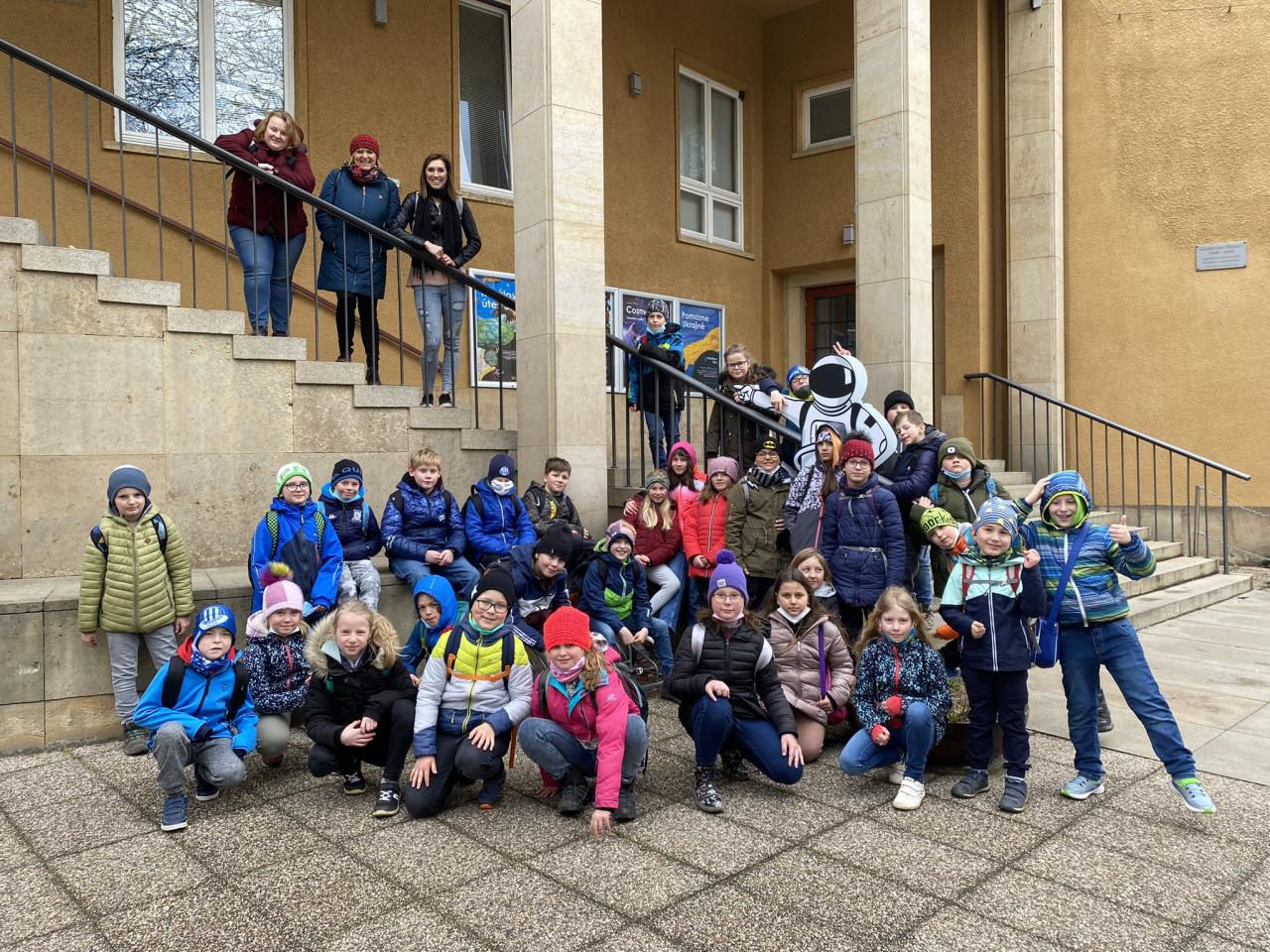 V úterý 5.dubna se třetí a čtvrtý ročník vydaly do Prahy do planetária. Během pořadu Vesmír kolem nás si žáci zopakovali, co všechno už vědí o Zemi i ostatních planetách naší Sluneční soustavy. Blíže se seznámili se souhvězdími a příběhy, které se k nim vážou. Zjistili také, zda bychom mohli žít na Marsu nebo kam až je člověk schopen se vesmíru dostat.