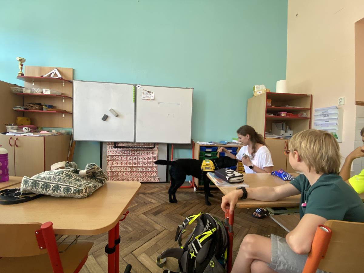 21.6. jsme zahájili ve škole týden s vodícím psem. Povídali jsme si, jak se chovat k vodícím a jiným asistenčním psům, jak pomoci nevidomé osobě. Zabrousili jsme i do anatomie psa. Zdůraznili jsme si, co je podstatné pro výcvik vodicích psů, co by vše měl vodící pes zvládat, jak se chovat v přítomnosti psa. Popovídali jsme si o výcvikovém středisku a samozřejmě nechyběla ani názorná ukázka. Děti byly nadšené, že se mohly vžít do nevidomých osob a nechat se vést vodícím psem. Nakonec se s Eccouškem všichni pomazlily. Děkujeme za návštěvu.