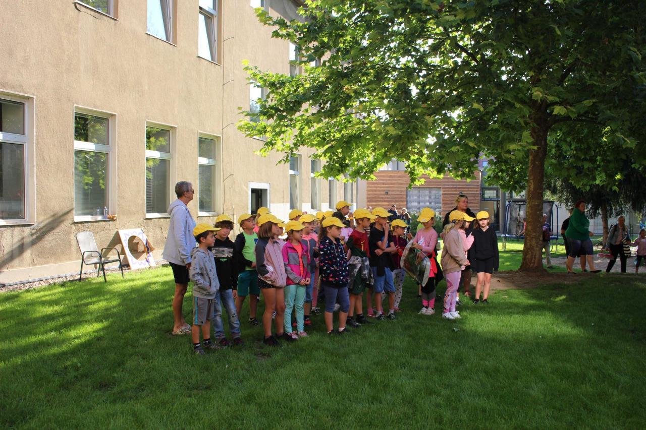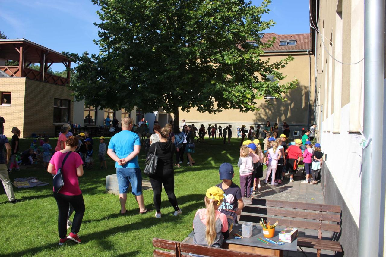 Ve úterý 5.9. proběhl tradiční piknik. Počasí nám přálo, a tak jsme jedli, soutěžili a sportovali na čerstvém vzduchu. Páťáci provedli nejmladší spolužáky celým dopolednem, všechno jim ukázali a seznámili je s ostatními dětmi. Na zahradě se skákalo na trampolíně, hrál stolní tenis, malovalo se na tabuli i na papír, tancovalo a mnoho dalšího… Na to, jak si děti den užily, se podívejte do fotogalerie.