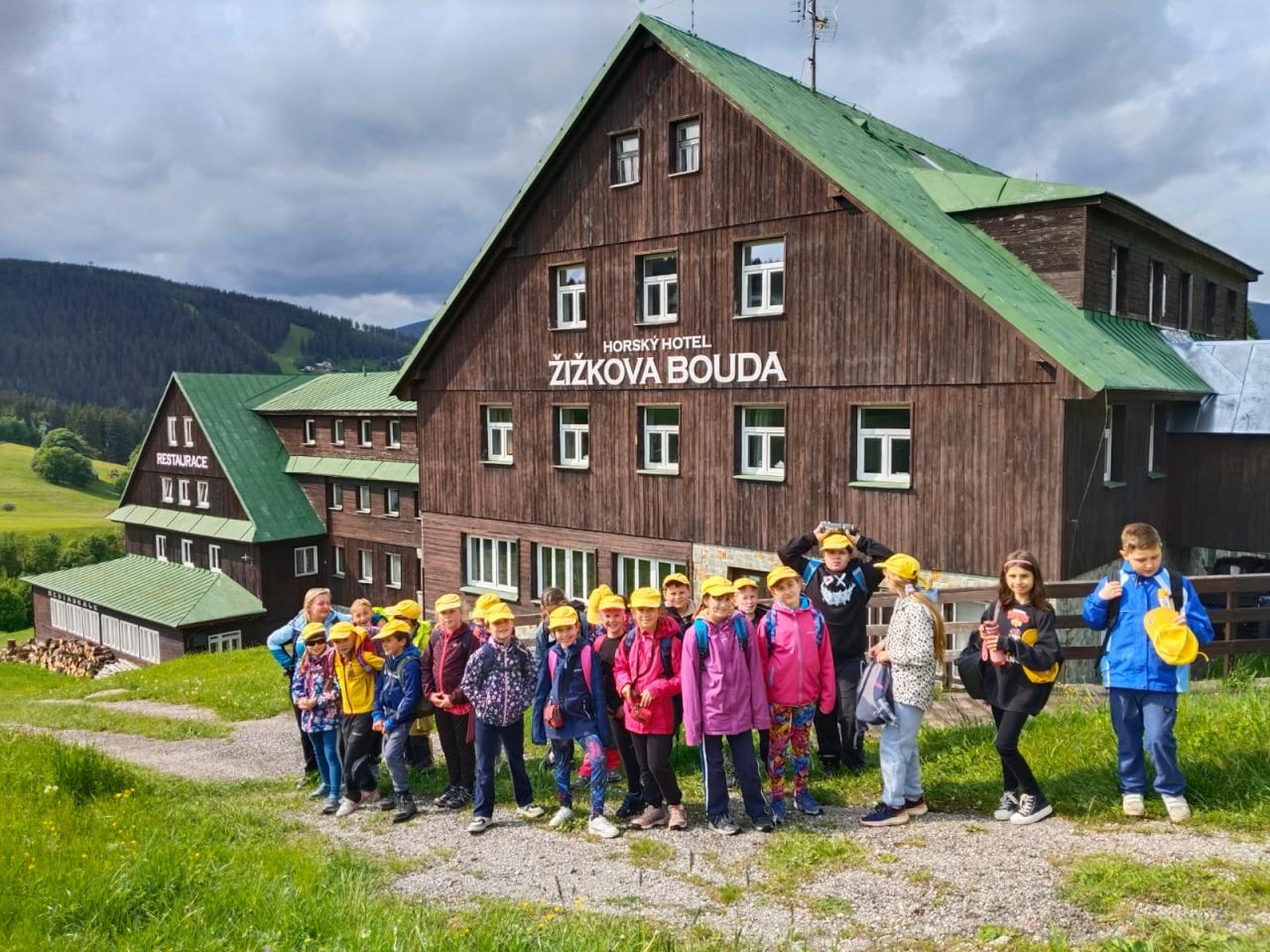 Po výborném obědě následovalo zabydlování v pokojích. Každý si vybalil své věci a vytvořil si malý domov na následující dny. Když bylo vše připraveno, jednotlivé třídy se vydaly na procházku do okolí, aby prozkoumaly přírodu kolem Žižkovy boudy. I když sluničko vykouklo jen párkrát, tak si i tak děti užívaly čerstvý vzduch a krásné výhledy.