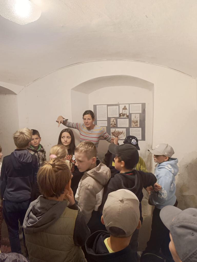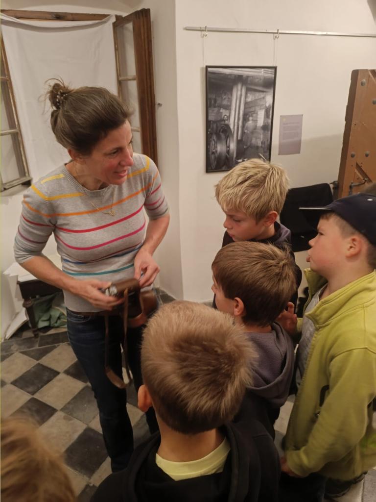 Protože zpáteční autobus odjížděl až po poledni, připravila pro děti skvělá Katka Linhartová ještě interaktivní prohlídku stálé expozice v místním muzeu. Děti si mohly zábavnou formou rozšířit obzory a zároveň si odnést nové poznatky o životě a historii Velvar.