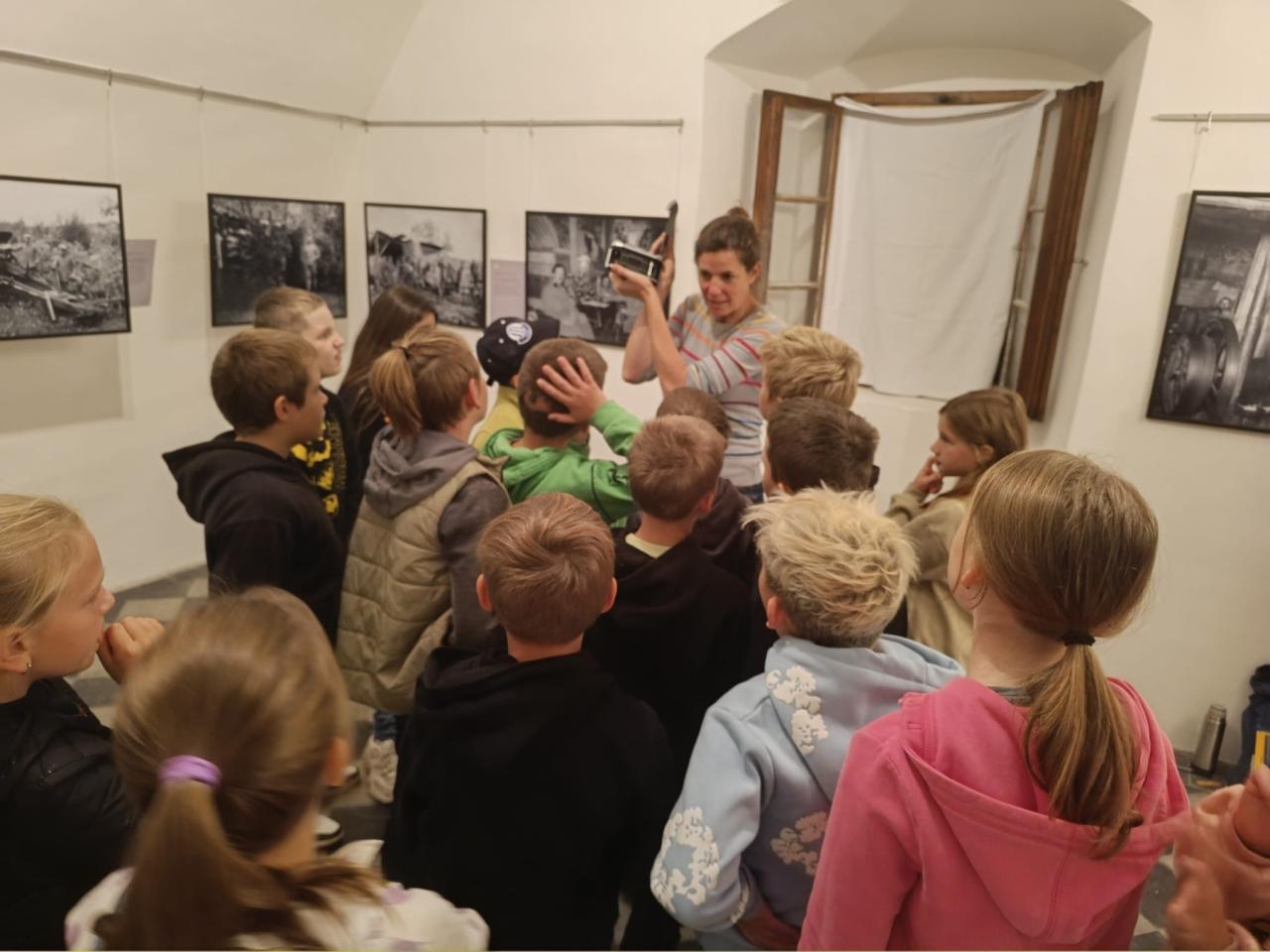 Nový školní týden začali naši čtvrťáci nevšedním způsobem – ve Velvarech je čekal program s názvem Tajemná Camera Obscura. Latinská slova „camera obscura“ znamenají „temná komora“ a děti už dnes přesně vědí, jak tento kouzelný přístroj funguje. Měly totiž jedinečnou možnost si jej vyzkoušet na vlastní oči i kůži a zažít, jak si lidé kdysi dávno pomáhali k vytvoření obrazu.