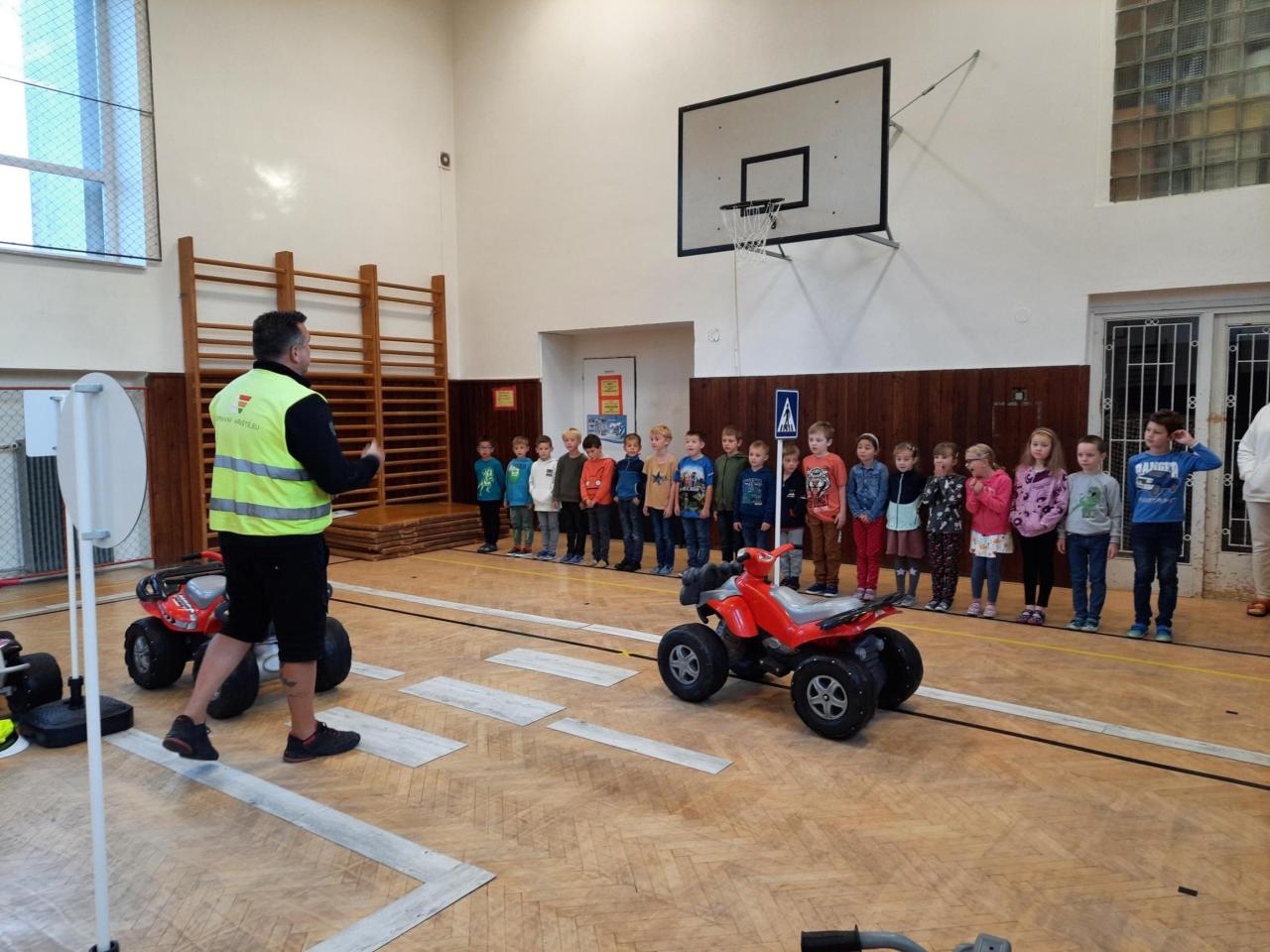 Jako každý rok nás navštívili pánové z dopravního hřiště. V tělocvičně připravili „silnice“ s dopravními značkami, kde si děti mohly vyzkoušet jízdu automobilem. Žáci si procvičili znalosti, které znají a naučili se, co ještě neznali. Děkujeme za návštěvu, děti byly nadšené.