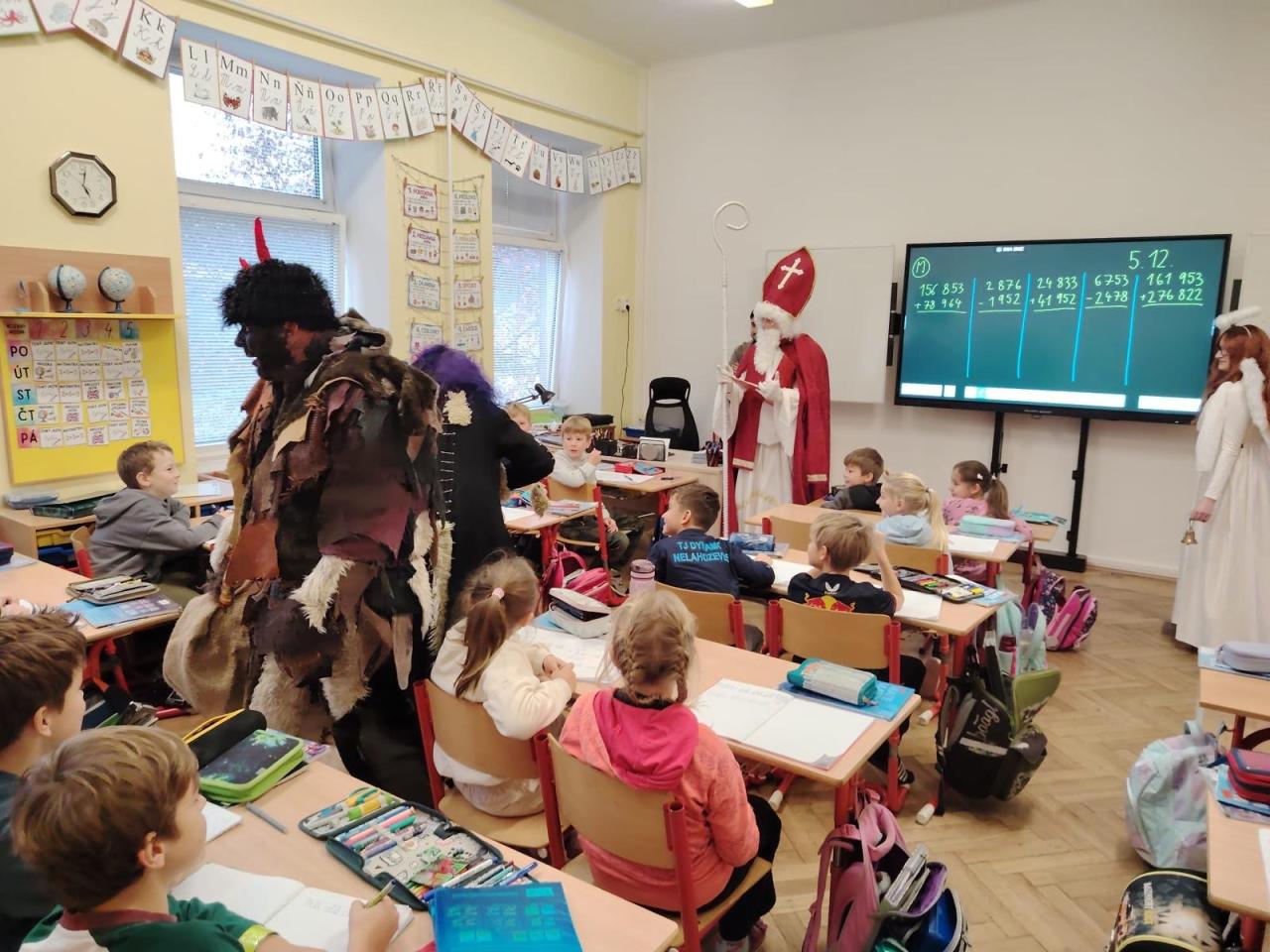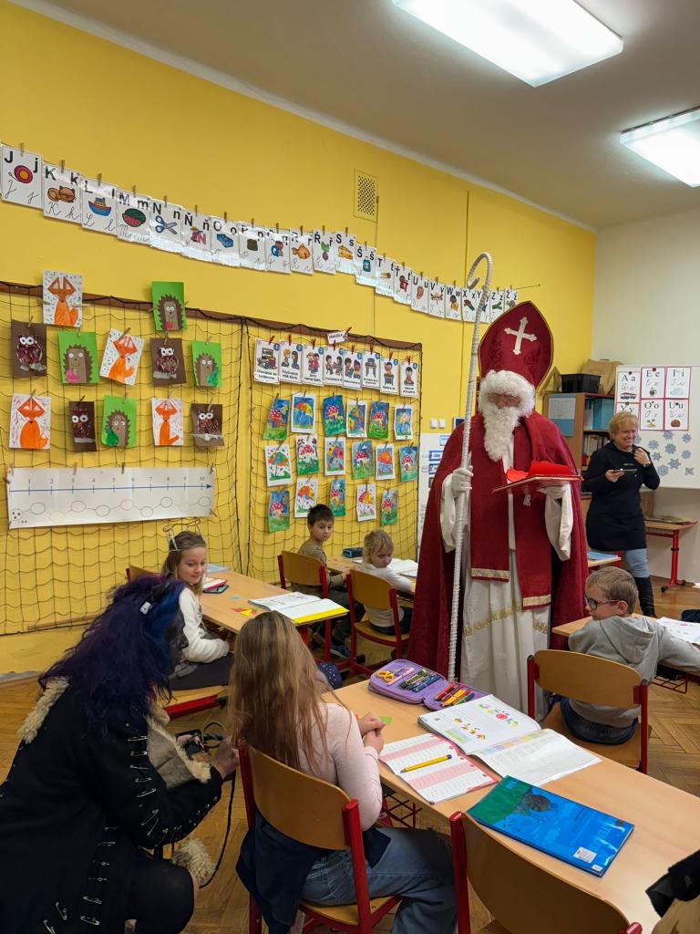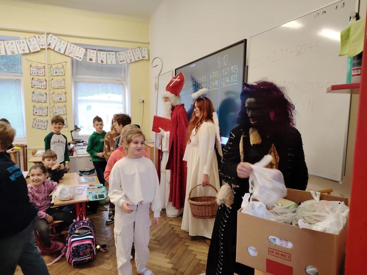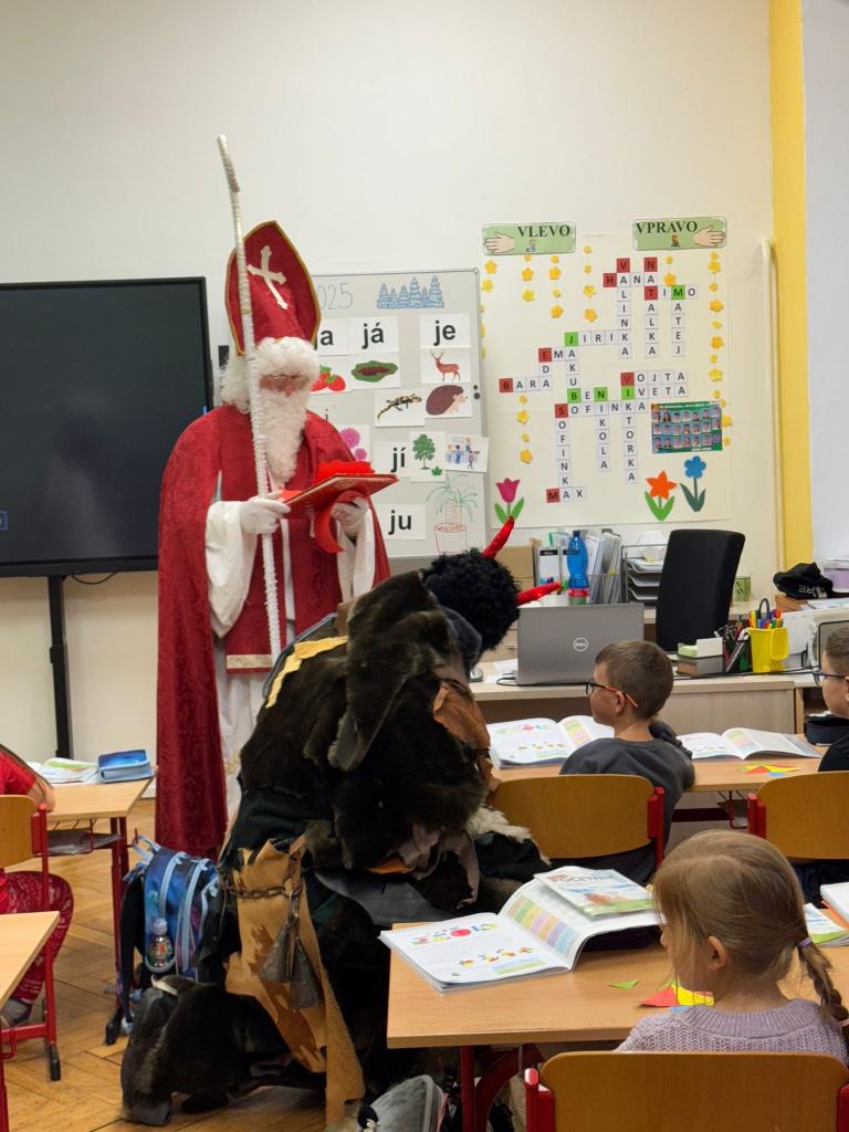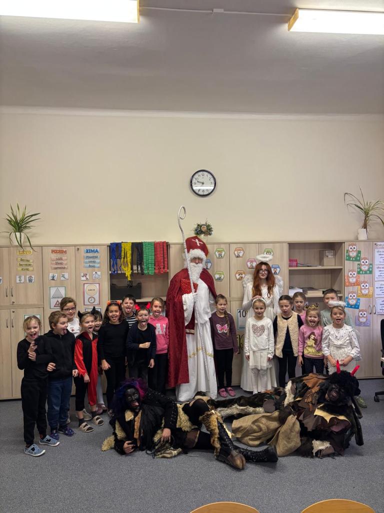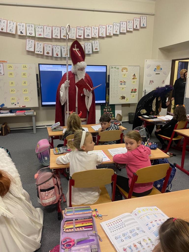 Dnes bylo ve škole opravdu veselo. Je 5. prosince a všechny děti moc dobře vědí, co tento den znamená. Už při příchodu do tříd byla na žácích patrná malá nervozita – možná zpytování svědomí? Ale kdepak, brzy to z nich spadlo. 😉