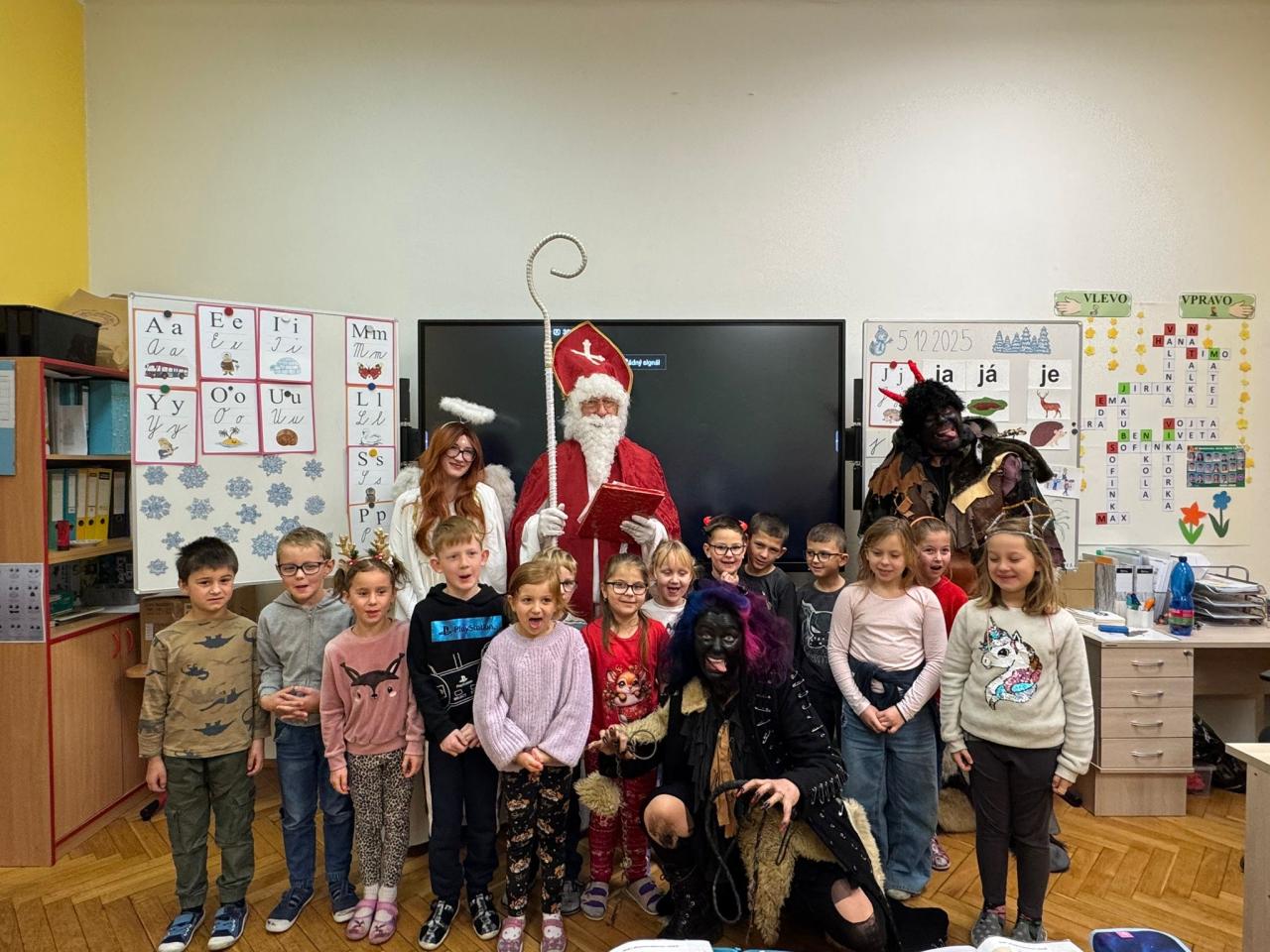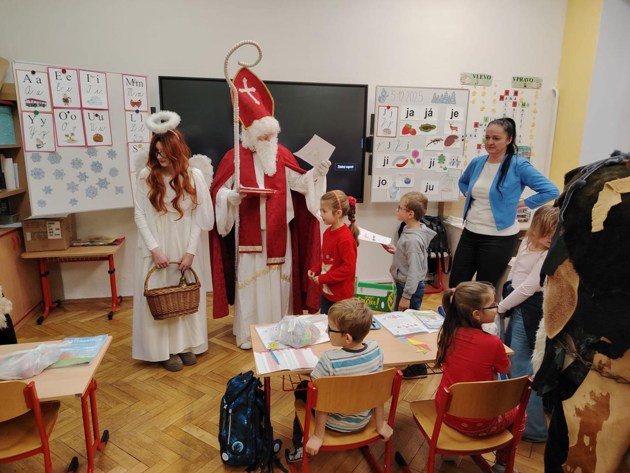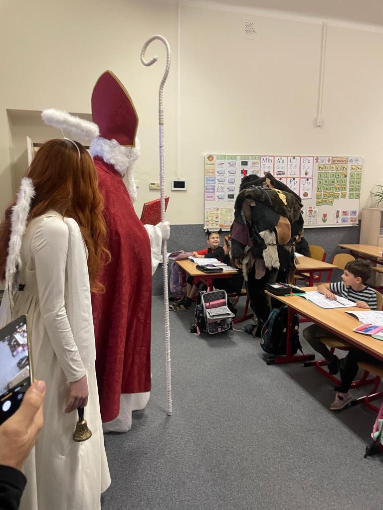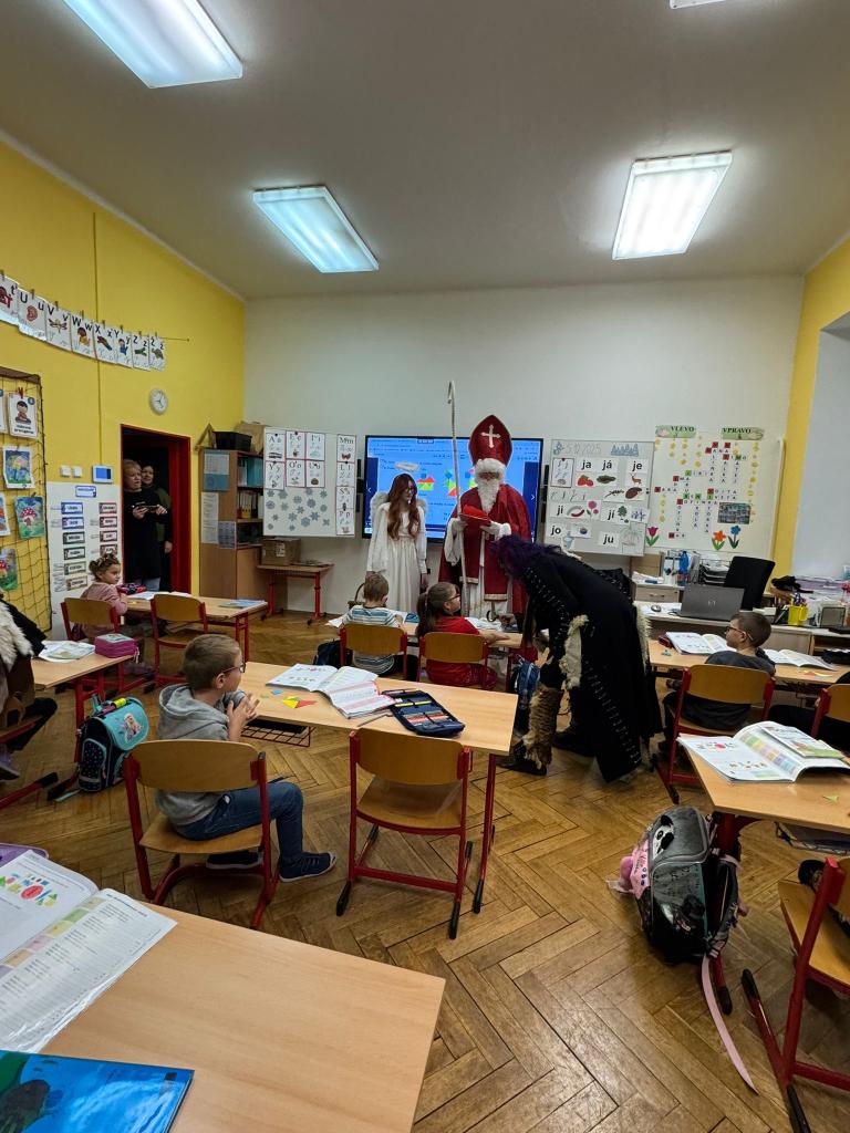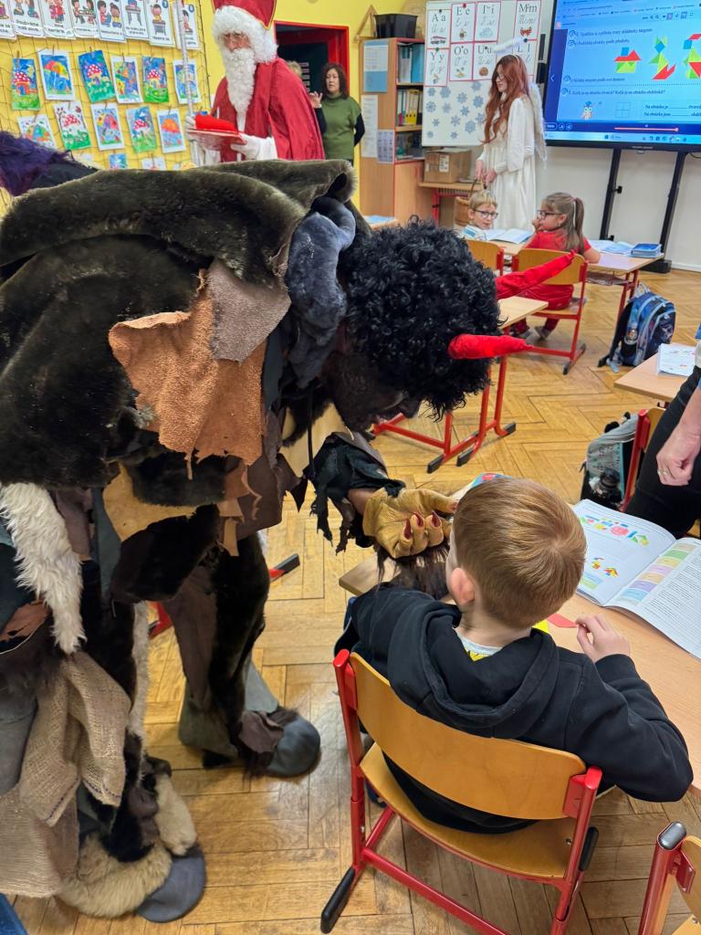 Dnes bylo ve škole opravdu veselo. Je 5. prosince a všechny děti moc dobře vědí, co tento den znamená. Už při příchodu do tříd byla na žácích patrná malá nervozita – možná zpytování svědomí? Ale kdepak, brzy to z nich spadlo. 😉