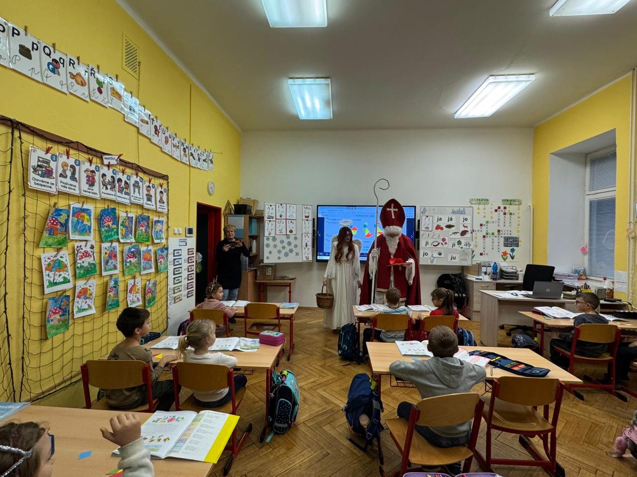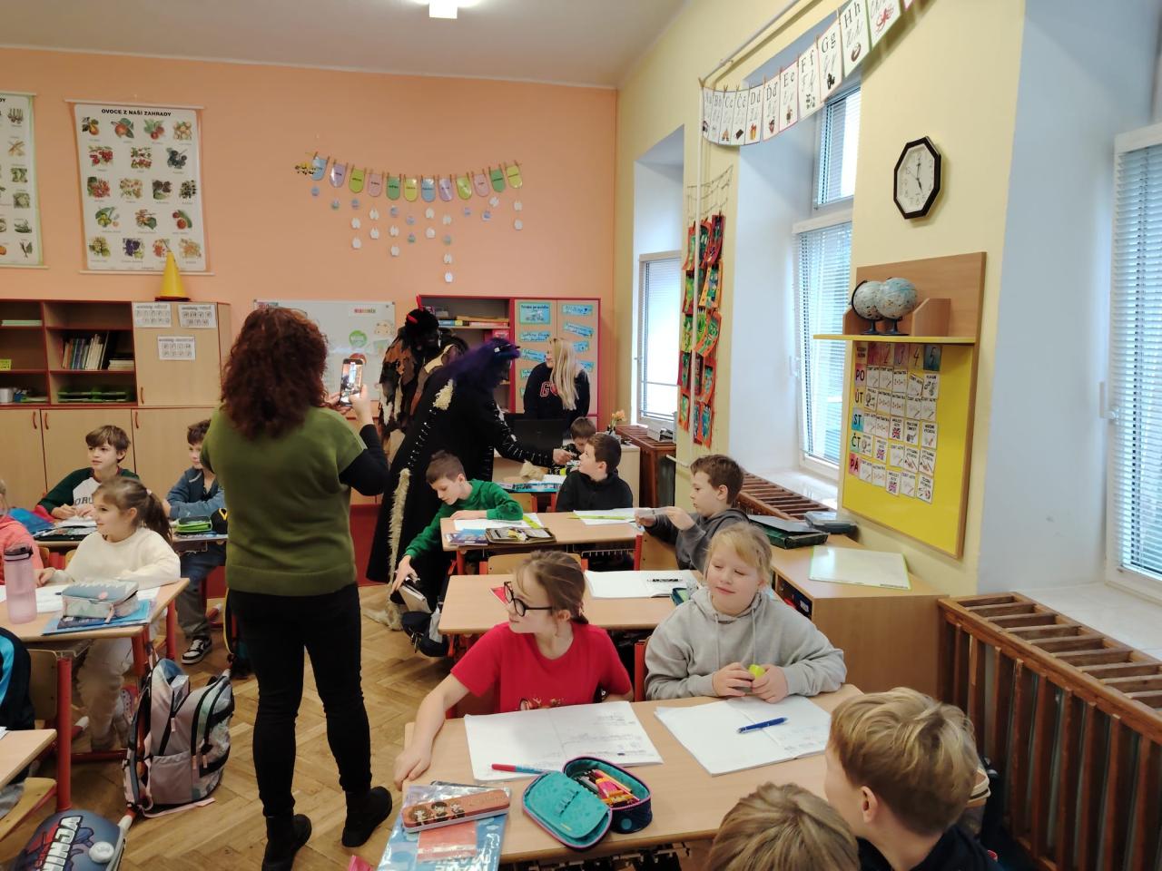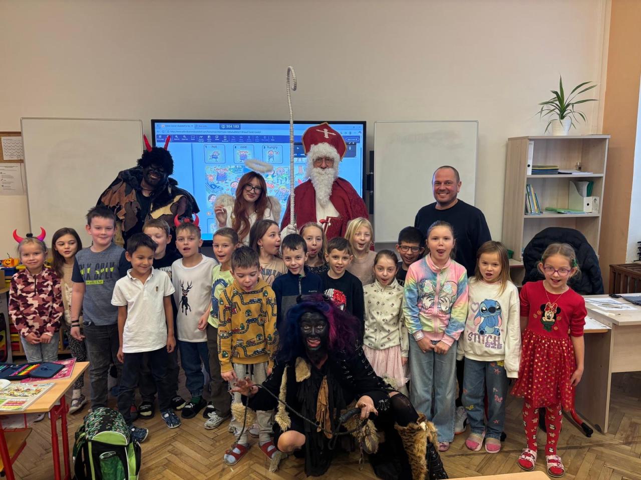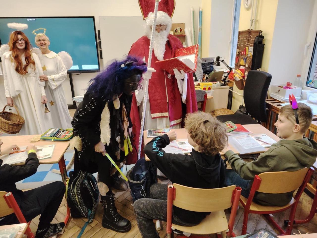 Dnes bylo ve škole opravdu veselo. Je 5. prosince a všechny děti moc dobře vědí, co tento den znamená. Už při příchodu do tříd byla na žácích patrná malá nervozita – možná zpytování svědomí? Ale kdepak, brzy to z nich spadlo. 😉
