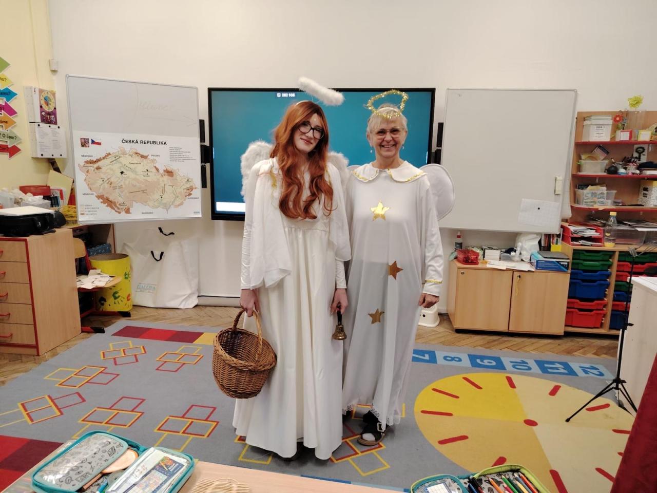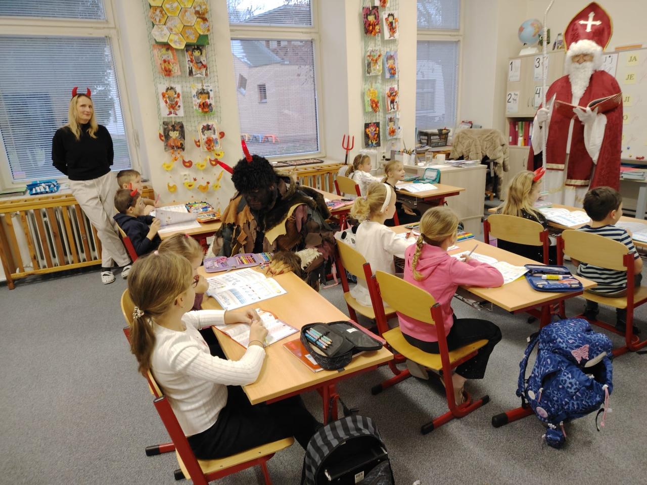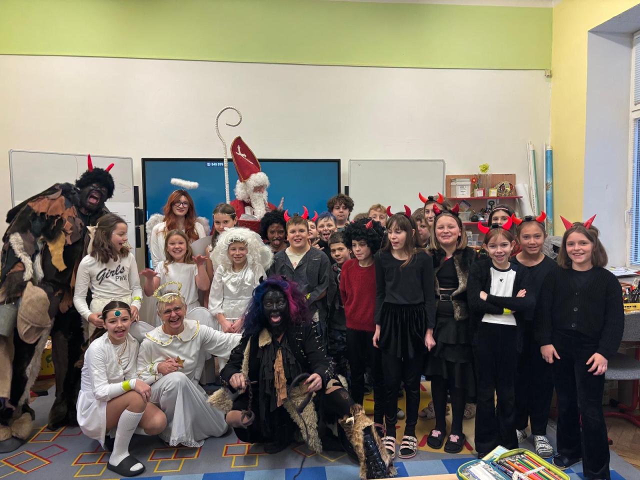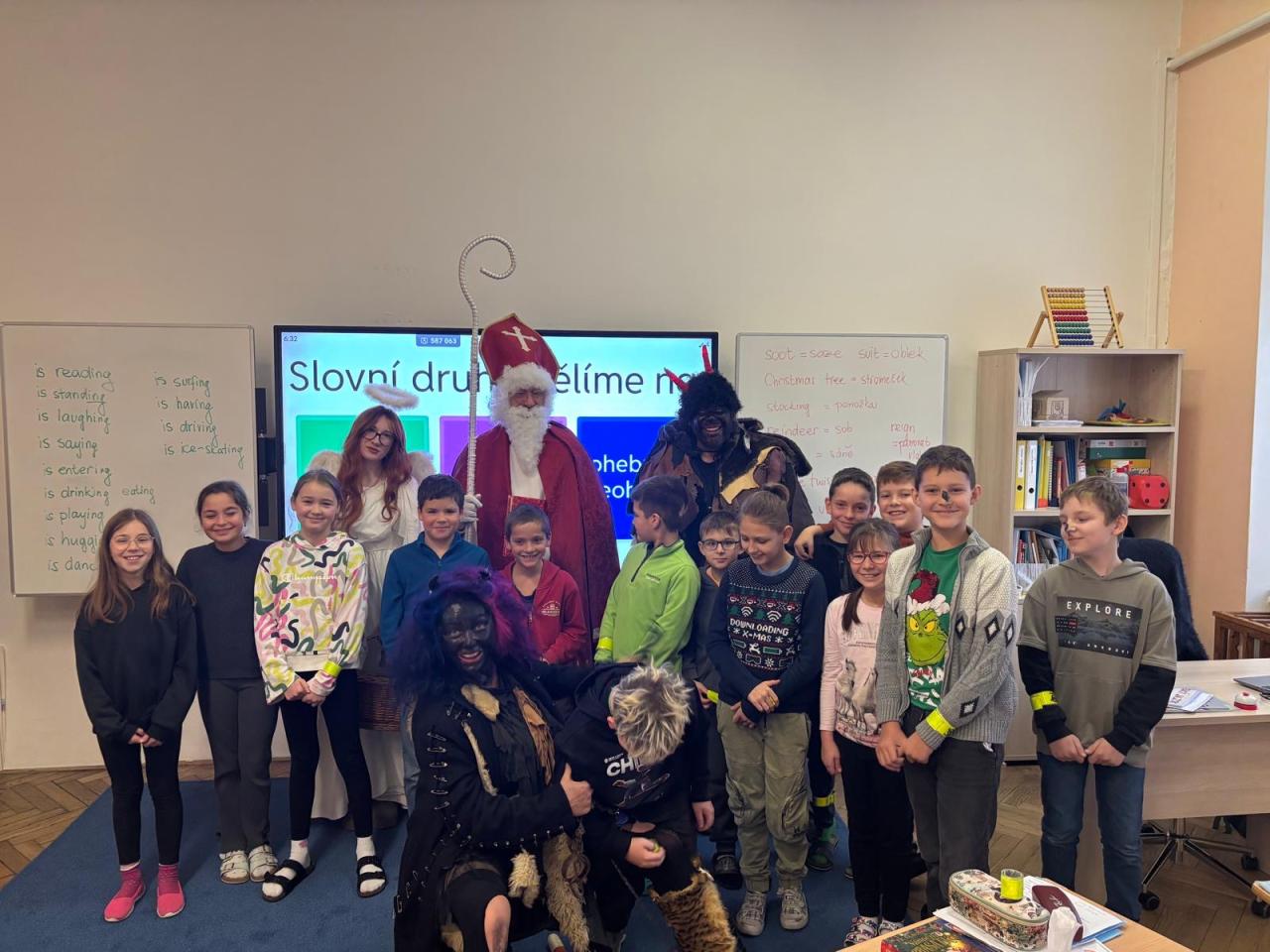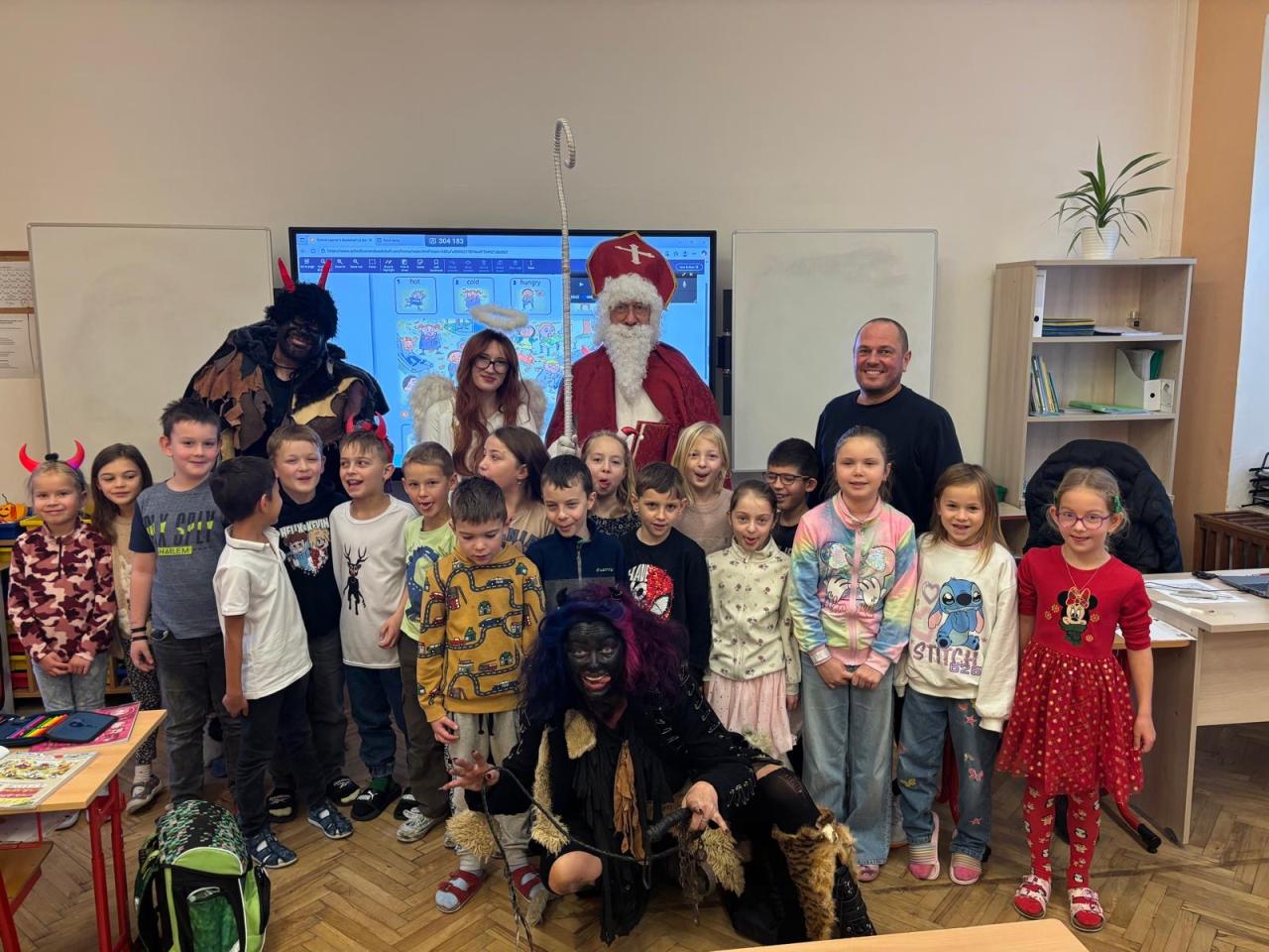 Dnes bylo ve škole opravdu veselo. Je 5. prosince a všechny děti moc dobře vědí, co tento den znamená. Už při příchodu do tříd byla na žácích patrná malá nervozita – možná zpytování svědomí? Ale kdepak, brzy to z nich spadlo. 😉