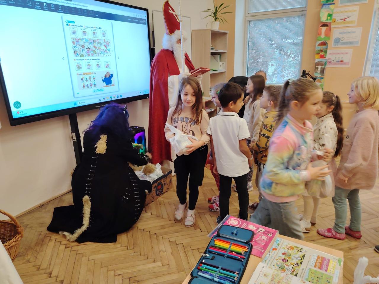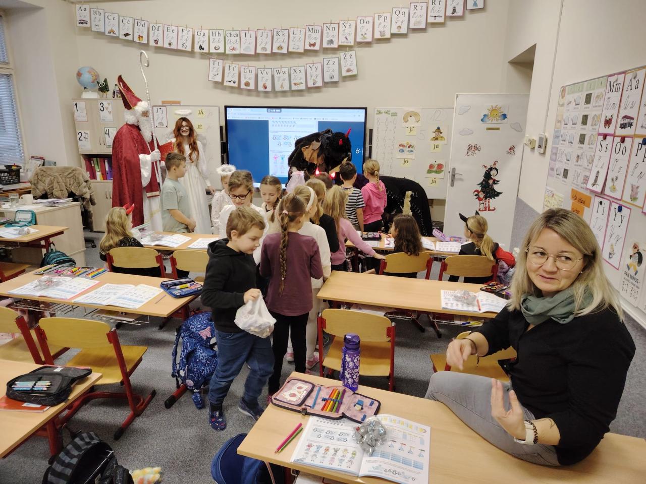 Dnes bylo ve škole opravdu veselo. Je 5. prosince a všechny děti moc dobře vědí, co tento den znamená. Už při příchodu do tříd byla na žácích patrná malá nervozita – možná zpytování svědomí? Ale kdepak, brzy to z nich spadlo. 😉