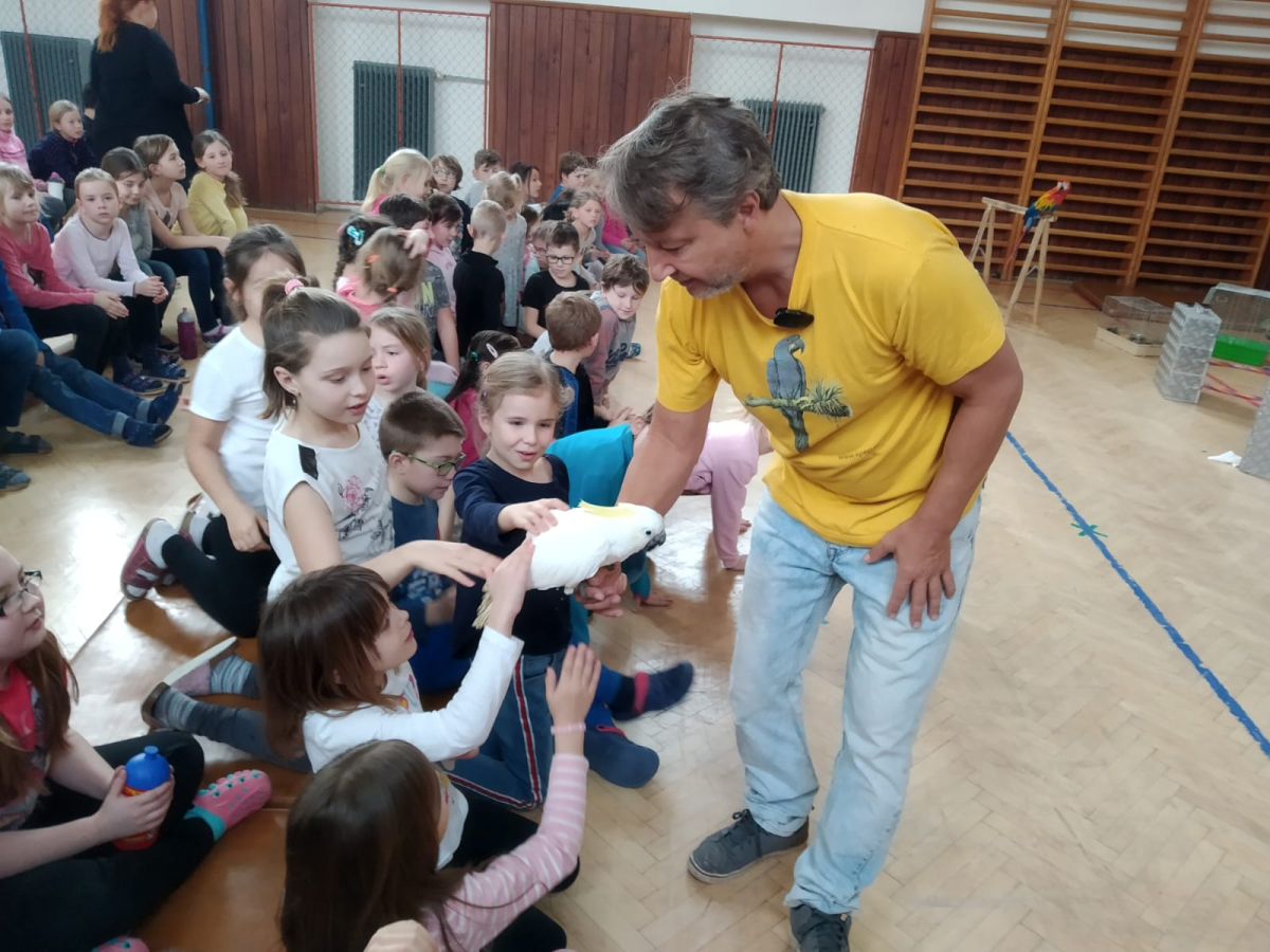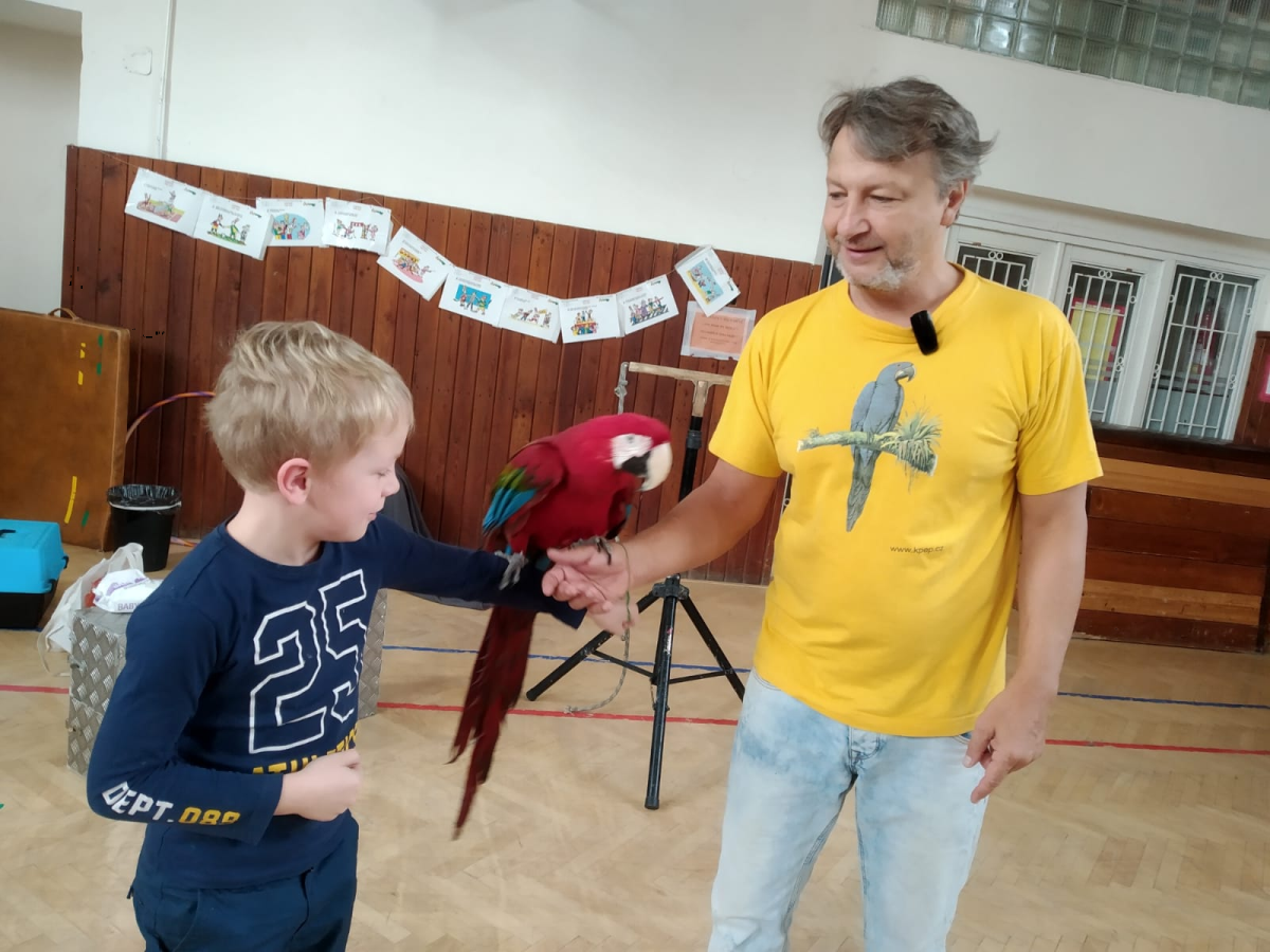 18.2. nás navštívil pan Jindřich, který nám přivezl ukázat několik druhů papoušků. Pan Jindřich k nám přivezl např. Aru zelenokřídlého , Aru macao, Ara Ararauna, Kakadu, Kongo Žaka nebo Papoušíčka vrabčího. Jako překvapení jsme viděli na vlastní oči opičky Kosmana bělovousého nebo Kosmana zakrslého.