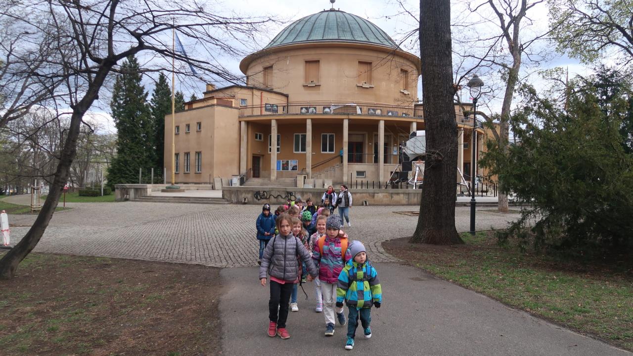 V pátek 8.dubna byli prvňáci na exkurzi v planetáriu. Viděli zajímavý pořad o putování Slunce a Měsíce po obloze a seznámili se s planetami, které obíhají kolem Slunce a s mnoha souhvězdími na noční obloze. Zařádili si také ve Stromovce.