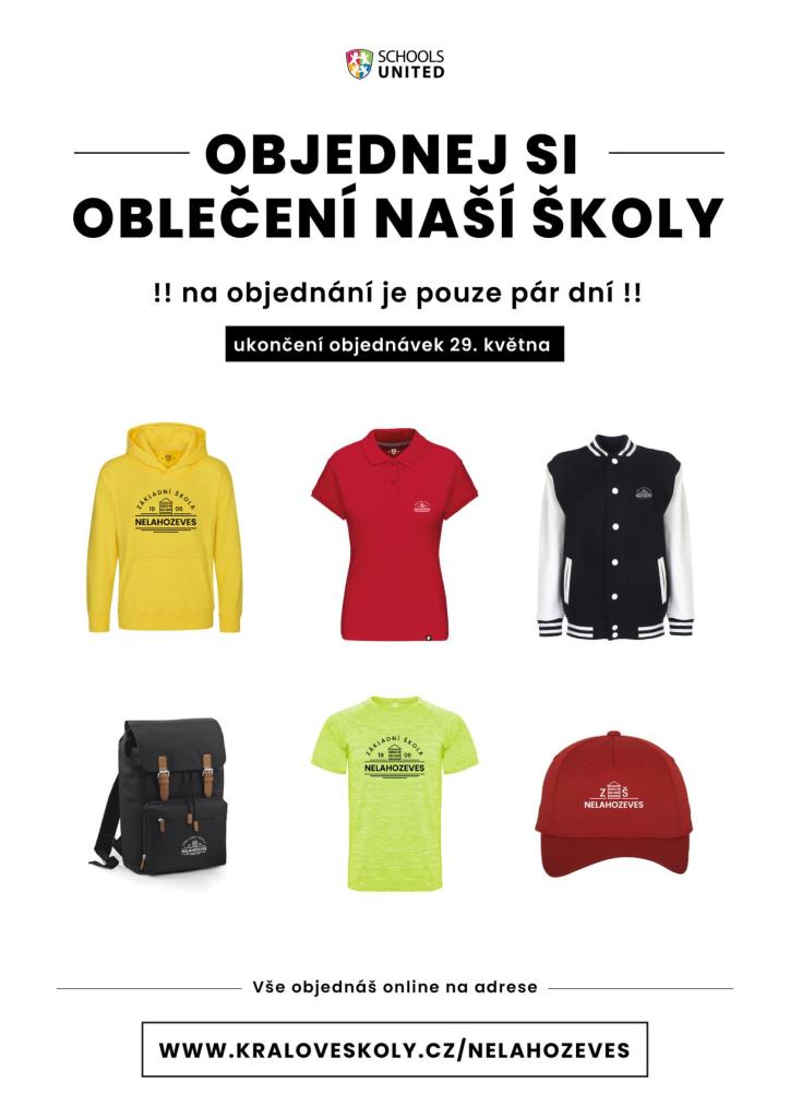 Nechali jsme si jako škola vytvořit svoji vlastní volnočasovou školní kolekci oblečení, jejíž náhled vidíte níže a kterou je možné si aktuálně pořídit na našem e-shopu zde: https://www.kraloveskoly.cz/nelahozeves/ Objednávání je již spuštěno a bude možné až do 29.5.2022. Následně se e-shop uzavře a objednané zboží půjde do výroby. Neváhejte proto, pokud si chcete pořídit ten svůj kousek ze školní kolekce. Doufáme, že budete mít z naší nové kolekce stejnou radost jako máme my!